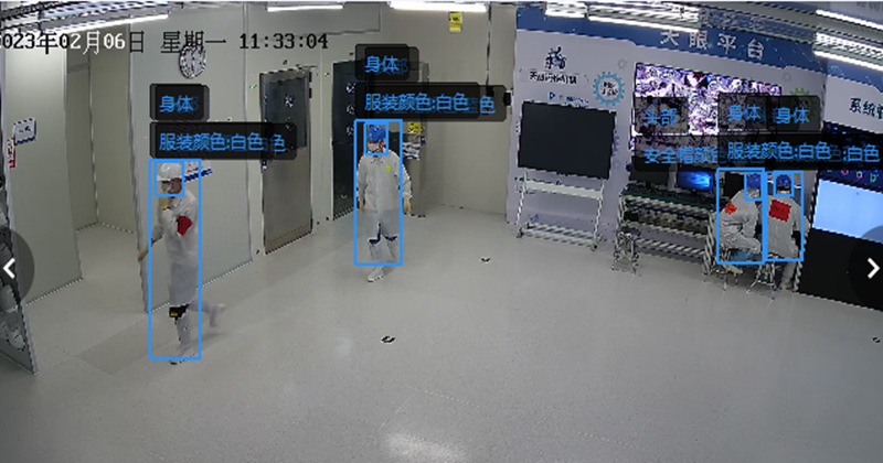 根據(jù)企業(yè)需求,識別車間人員著裝是否規(guī)范現(xiàn)存問題點:因現(xiàn)場為無塵車間,需員工統(tǒng)一身穿白色無塵服佩戴小工帽,因廠商或工作人員急忙進(jìn)入車間不按要求進(jìn)入,需通過AI識別技術(shù)判別員工著裝合規(guī)性解決方案:攝像機部署在關(guān)鍵出入口前,識別進(jìn)出人員是否著裝正確,如若異常進(jìn)行現(xiàn)場語音提示,并將該事件上傳至環(huán)安部。