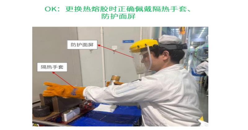 根據(jù)企業(yè)需求,識別安全作業(yè)時是否違規(guī)未穿戴防護(hù)裝置現(xiàn)存問題點:更換熱熔膠時,人員有時未按規(guī)范操作,易發(fā)生安全隱患,需現(xiàn)場語音提示并將該事件記錄解決方案:攝像機部署在工位上,識別人員手部有無佩戴隔熱手套,頭部有無佩戴防護(hù)面罩,若無觸發(fā)告警